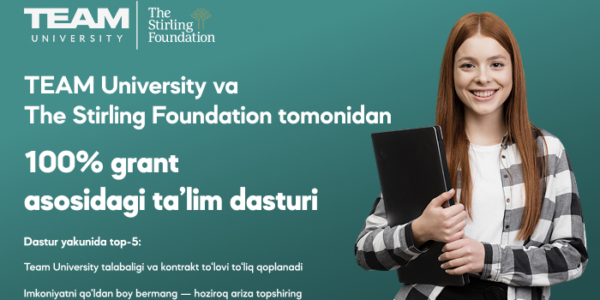 TEAM University va The Stirling Foundation hamkorligida motivatsiyaga ega va moliyaviy jihatdan ehtiyojmand yoshlar uchun grant asosidagi ta’lim dasturi ishga tushirilmoqda. Ushbu tashabbus sifatli ta’lim olishni istagan, o‘z bilim va salohiyatini ri...Davomini o'qish